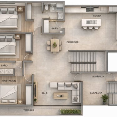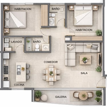 Cada apartamento en Amber Sand Residence ha sido cuidadosamente diseñado para maximizar el confort, la iluminación natural y la ventilación cruzada, creando espacios modernos y armoniosos.